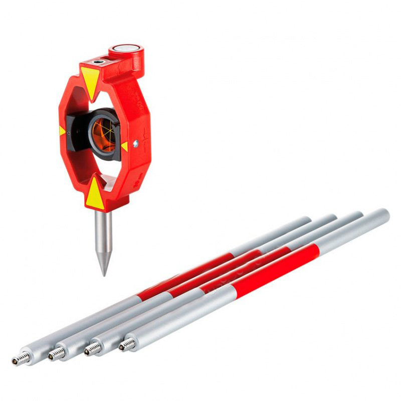 Мини-призма, установленная на пластиковом держателе с резьбовыми креплениями 1/4 дюйма. Включает круговой уровень, четырехсекционную веху GLS115 и наконечник, константа 0-призмы, максимальная IR дальность (в инфракрасном диапазоне) 2000 м.